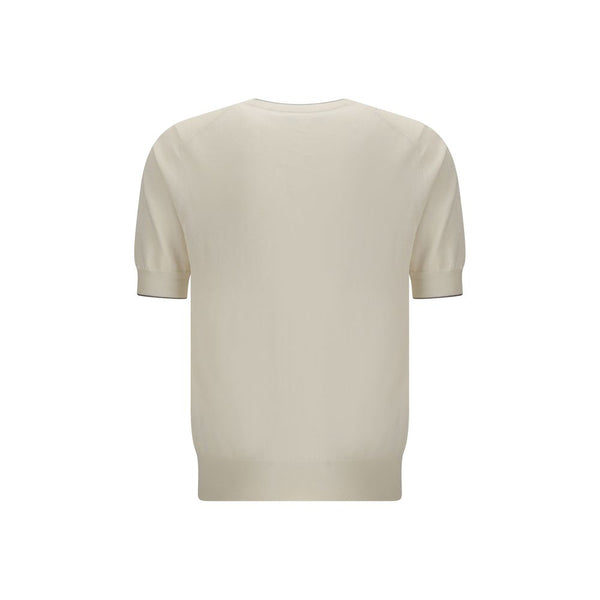 Brunello Cucinelli’s cotton T-Shirt is a garment with a sophisticated, contemporary style. The contrasting ribbed crew neck and ribbed hems on the sleeves and bottom add distinctive details and a touch of originality. The monochrome design gives a clean and elegant look, ideal for those seeking a simple yet refined look. Made of cotton, the T-shirt is comfortable and breathable, perfect for warmer days. The combination of classic elements and modern details makes this garment a versatile option for a variety of casual and fashionable outfits.
