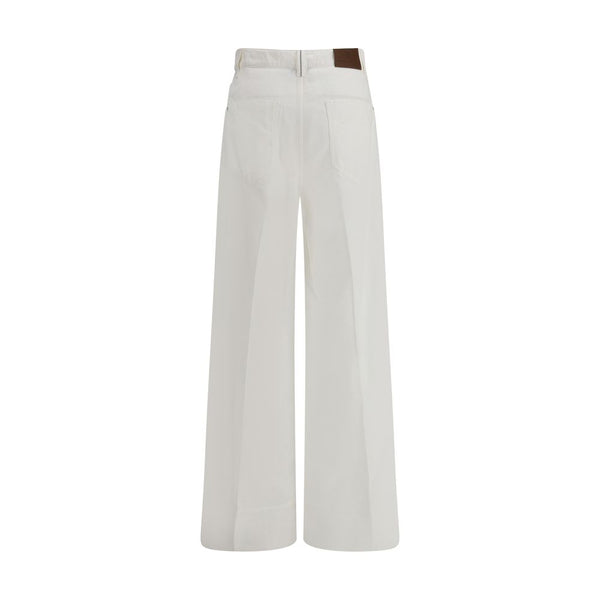 Brunello Cucinelli’s cotton linen Jeans feature a mid-rise, five-pocket style perfect for a stylish and versatile look. The front zipper closure adds practicality, while the wide-leg design offers a comfortable, modern fit. Belt loops at the waistband are embellished with iconic appliquéd shiny jewels, adding a touch of sophistication. Applied logo leather patch on the back adds a distinctive and classy detail.