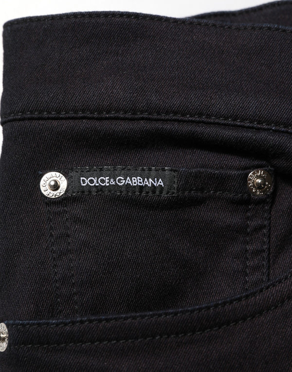 Dolce & Gabbana Black Cotton Blend Skinny Men Trouser Pants