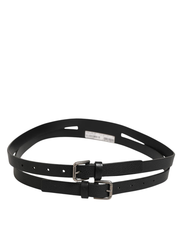 Dolce & Gabbana Black Double Strap Leather Gold Buckle Belt