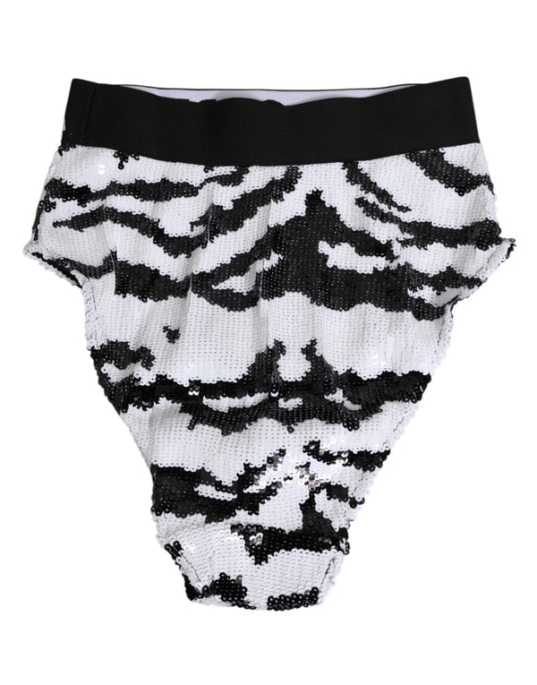 Dolce & Gabbana Black White Sequin High Waist Panty Underwear