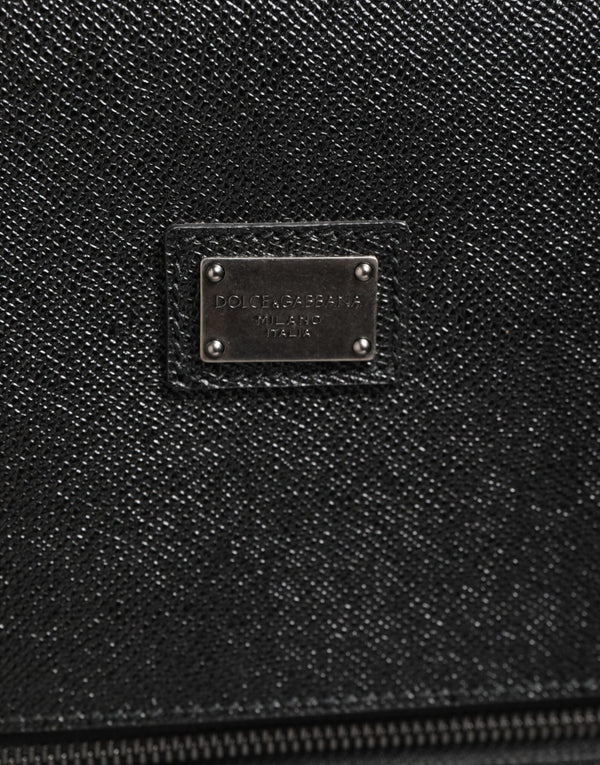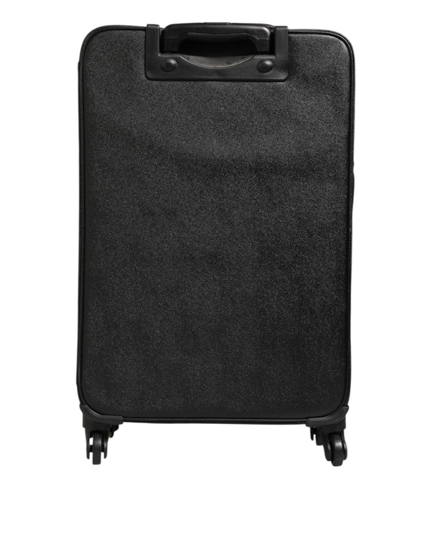 Dolce & Gabbana Gray Leather Logo Plaque Trolley Travel Wheel Men Suitcase Bag