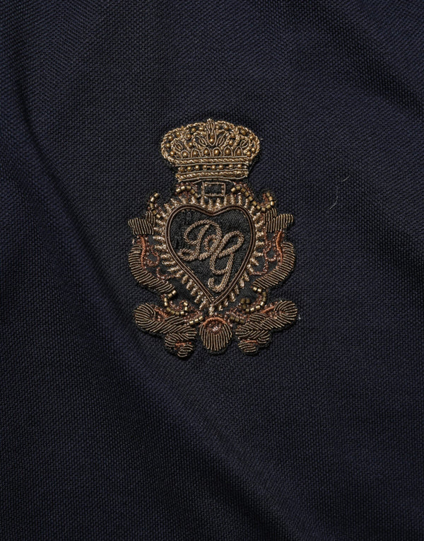 Dolce & Gabbana Navy Blue Cotton Crown Crest Logo Men T-Shirt