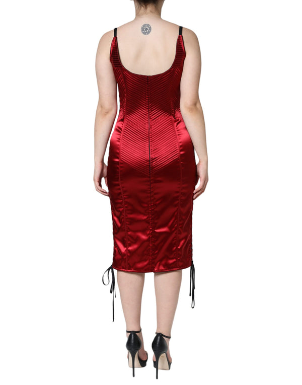 فستان دولتشي آند غابانا الأحمر ذو الصدر المشد والدانتيل