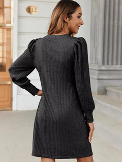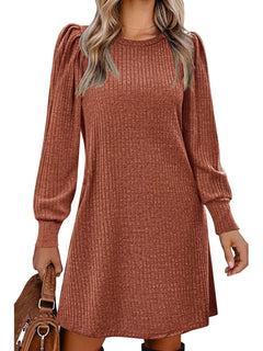 Ribbed Knit Puff Sleeve Casual Mini Dress