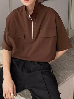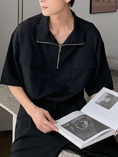 Men's Plus Size Half-Zip Oversized Polo Shirt