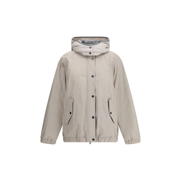 Brunello Cucinelli’s padded Down Jacket is a stylish and versatile garment with a front zipper and button closure. Featuring a removable and reversible hood, the model offers a choice between a knit side for a more casual look and a padded side for added protection against the cold. The two side welt pockets with flaps add functionality, while the elastic hem and cuffs provide a comfortable fit and excellent thermal protection. A perfect garment for facing winter in style.