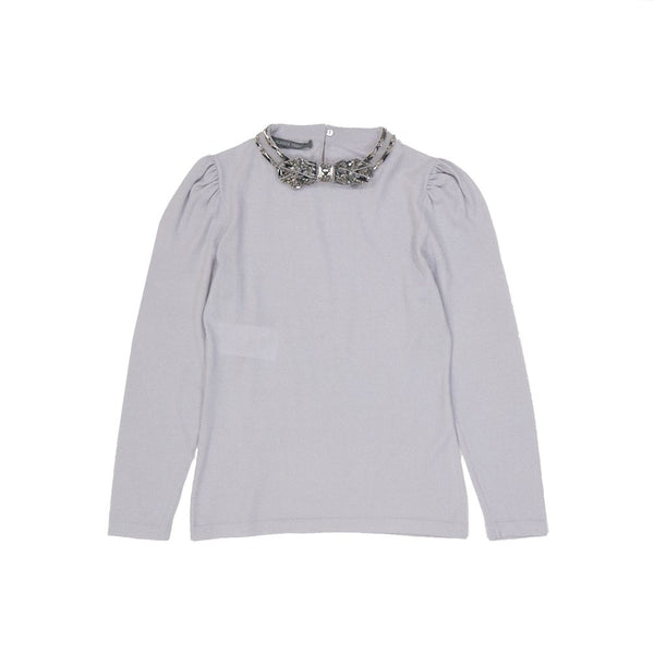 – Composition: 100% Virgin wool – Long sleeves – Round neck – Dry clean – Back button closure – Crystal embellishment – Balloon sleeves – Made in Italy – Gender: WOMEN –