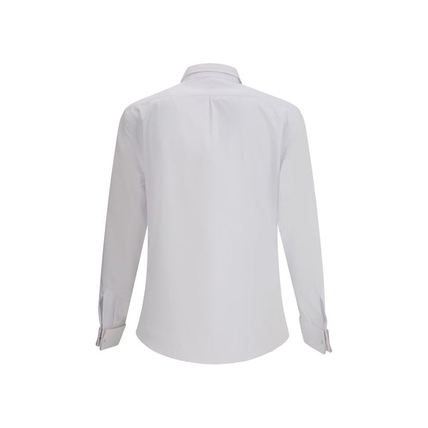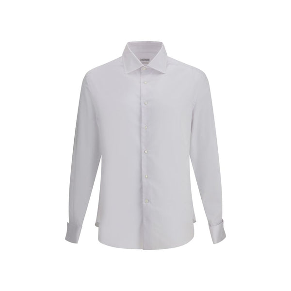Brunello Cucinelli’s cotton Shirt expresses sophistication and impeccable style. The classic collar and front button closure create a timeless look, while cuffs with lapels and appliqué cufflinks add a touch of formal elegance. The slim fit enhances the silhouette with a modern, well-structured fit. An essential garment for those who seek elegance in every detail.