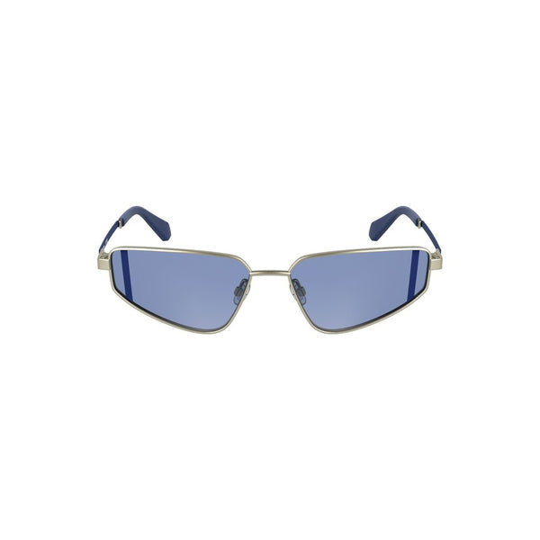 Infuse your vision with a touch of refined elegance with these Calvin Klein sunglasses. Crafted for the fashion-forward, these metal frames boast a sleek rectangular design, complemented by the cool allure of blue lenses. Perfectly engineered with a lens width of 57 mm, these shades ensure a comfortable fit with a bridge of 15 mm and temples measuring 140 mm. The gray hue and contrasting details underscore the brand’s penchant for sophistication, while the logo assures authenticity.