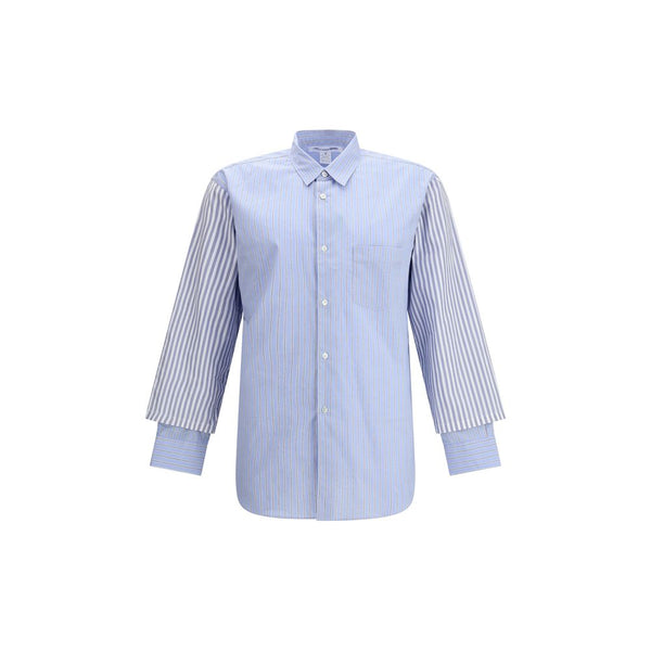 The Comme Des Garçons Shirt combines avant-garde sophistication with a regular fit. Crafted in a light blue plain fabric, it expresses modern, refined elegance. Perfect for any occasion, the long-sleeve design ensures timeless comfort and style. Featuring subtle stripes and double cuffs, it is ideal for a contemporary and meticulously detailed look