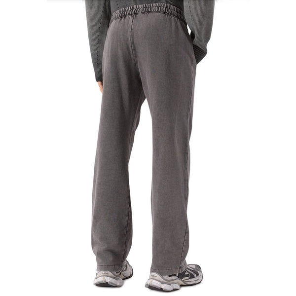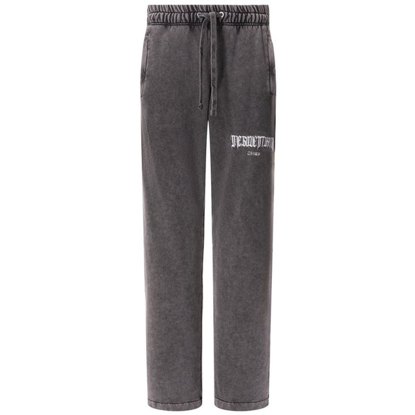 Diego Venturino vintage effect cotton trousers with elastic and drawstring waist, two side pockets and two on the back with zip fastening, front logo print