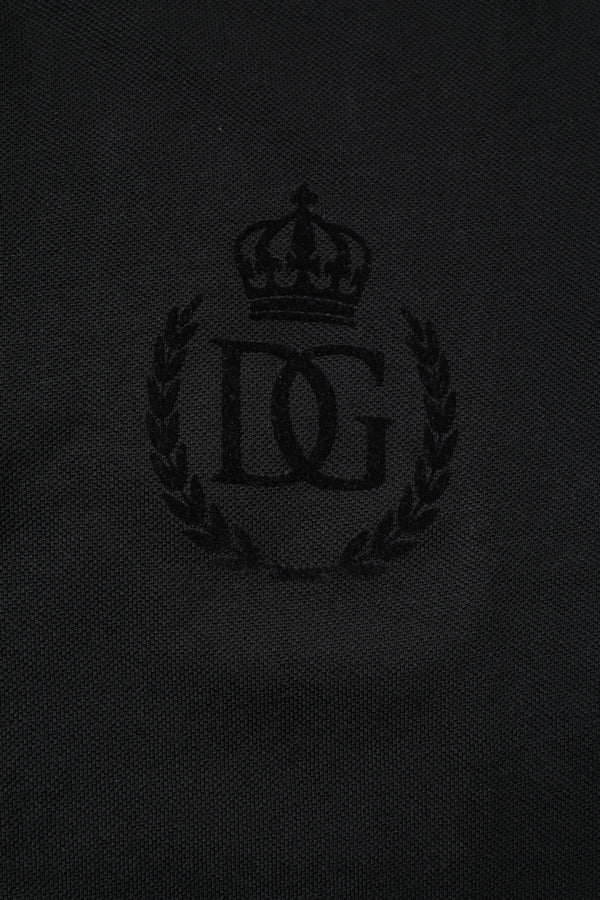 Dolce & Gabbana Black Cotton DG Logo Collared Polo T-shirt