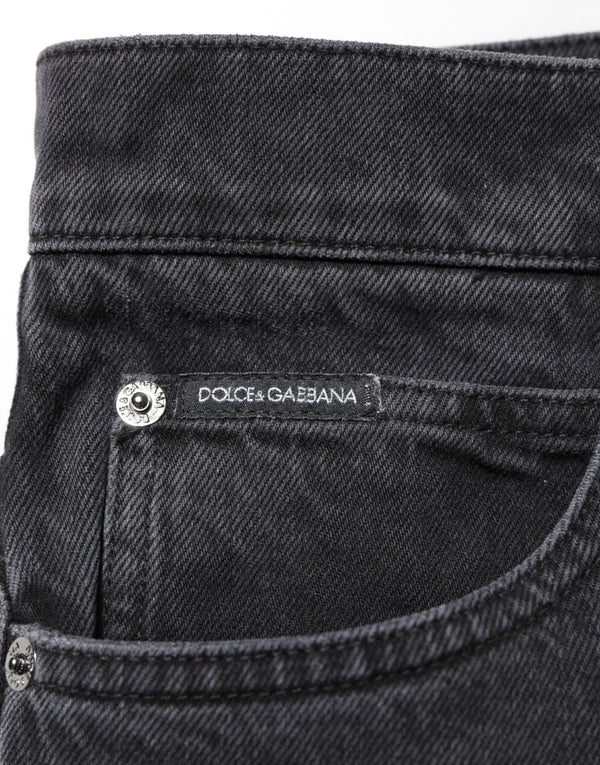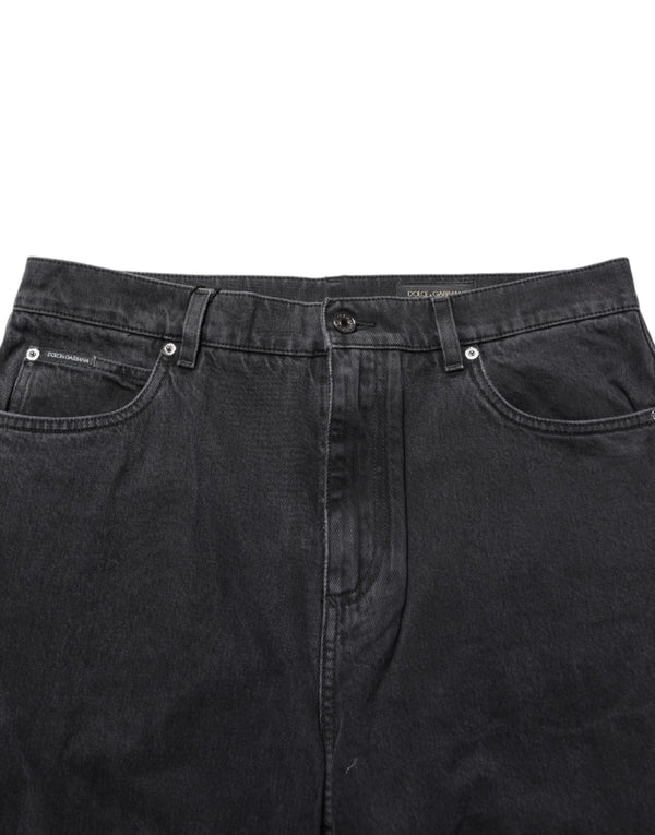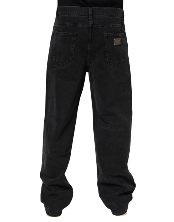 Dolce & Gabbana Black Denim Wide Leg Relaxed Fit Pants Jeans