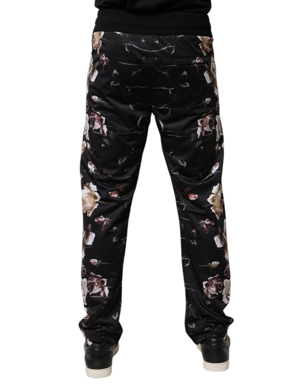 Dolce & Gabbana Black Floral Polyester Jogger Pants