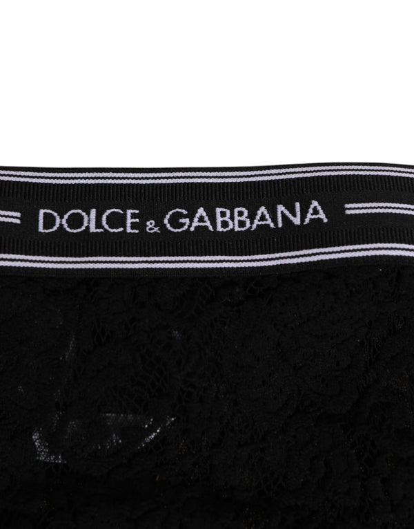 Dolce & Gabbana Black Lace Slip Brief Logo Waistband Underwear