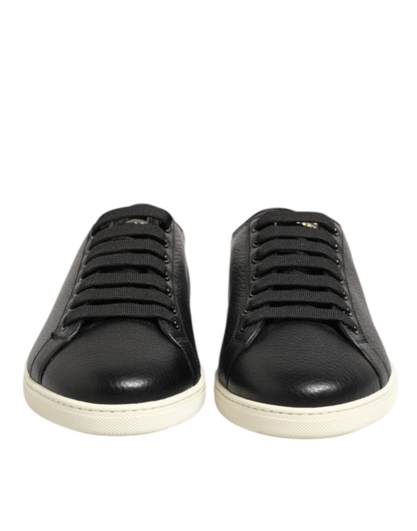 Dolce & Gabbana Black Leather Lace Up Low Top Sneakers Shoes