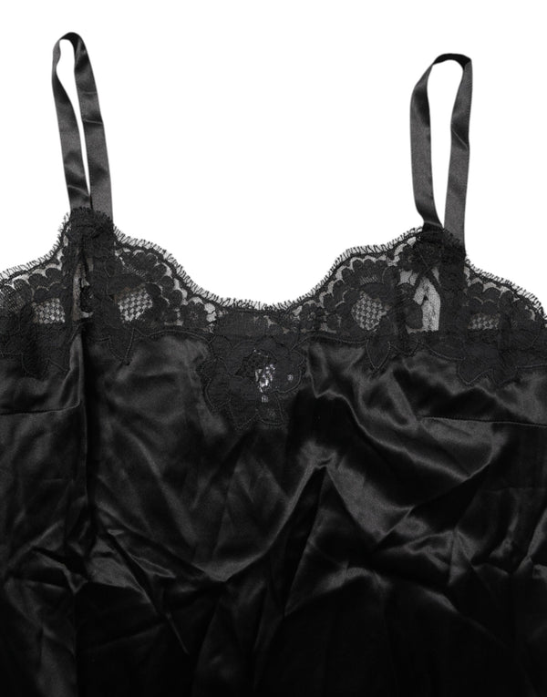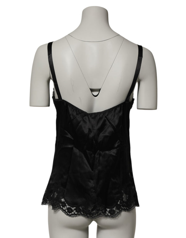 Dolce & Gabbana Black Silk Floral Lace Tank Lingerie Top Underwear
