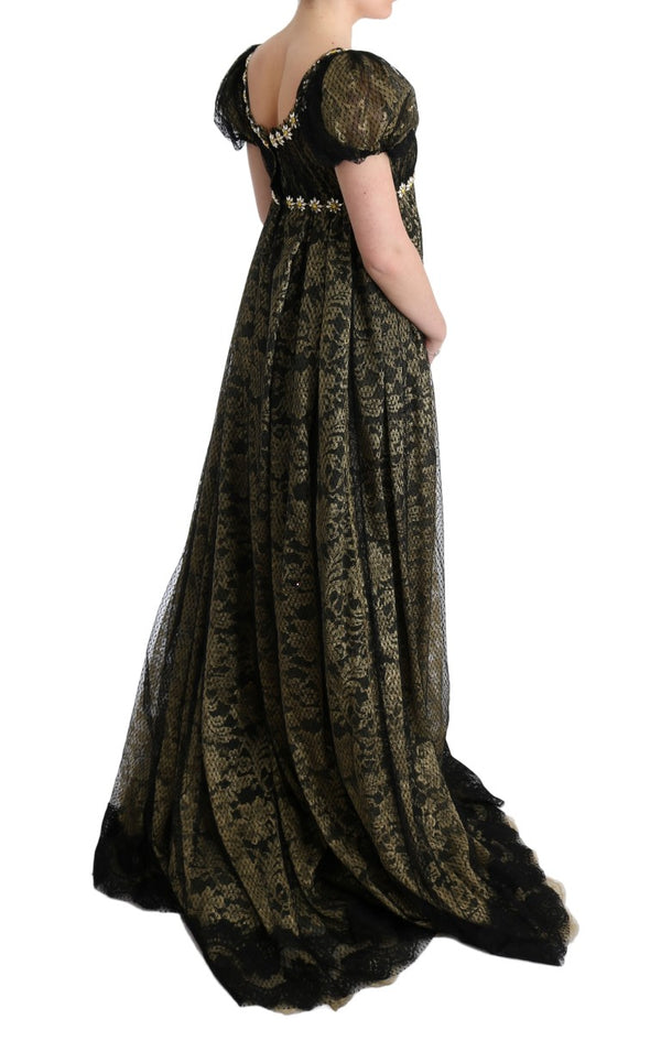 Dolce & Gabbana Black Yellow Crystal Lace Shift Dress