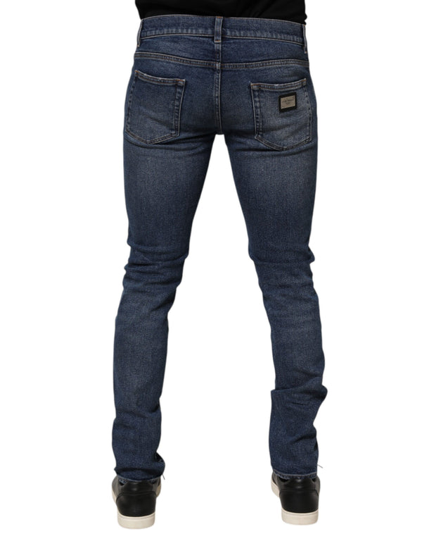 Dolce & Gabbana Blue Cotton Logo Plaque Skinny Men Denim Jeans