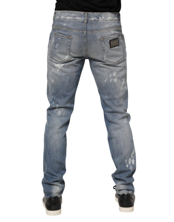 Dolce & Gabbana Blue Cotton Tattered Slim Fit Men Denim Jeans