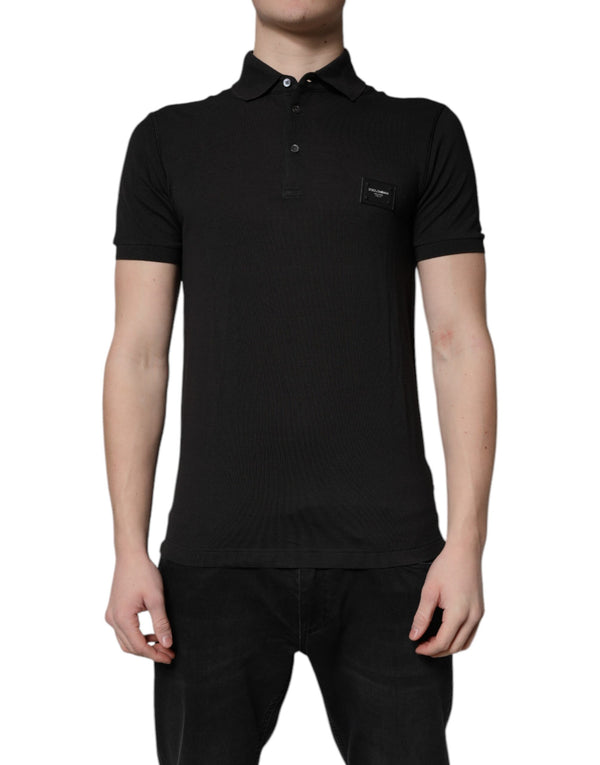 Dolce & Gabbana Dark Gray Logo Plaque Cotton Men Polo Shirt T-shirt