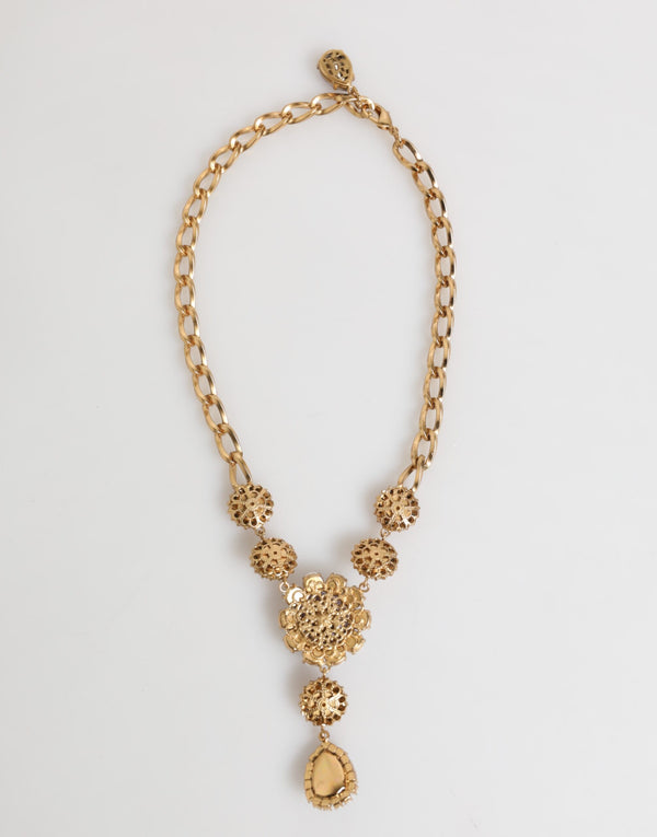 Dolce & Gabbana Gold Brass Crystal Pearl Purple Floral Pendant Jewelry Necklace
