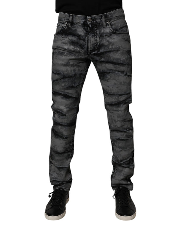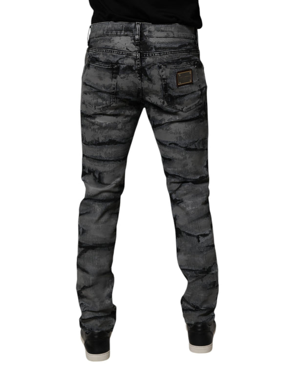 Dolce & Gabbana Gray Tie Dye Cotton Skinny Men Denim Jeans