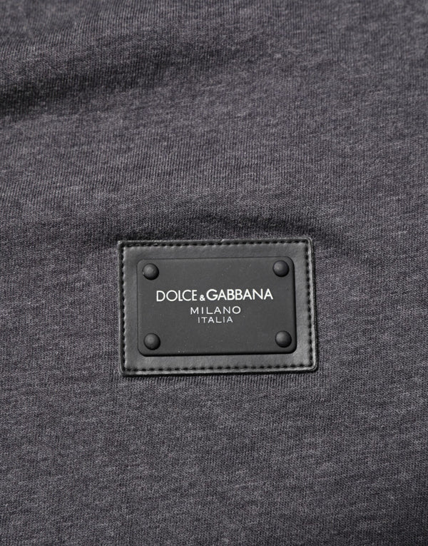 Dolce & Gabbana Grey Cotton V-Neck Logo Plaque Melange T-Shirt