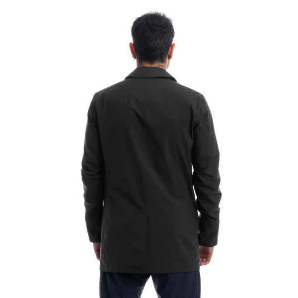 Elevate your outerwear game with Herno’s Laminar trench coat. Crafted for the modern man, this sleek black men’s coat embodies luxury fused with cutting-edge technology. Made from advanced Gore-Tex fabric, it promises to be your shield against the elements – lightweight, breathable, and impervious to rain and wind. This single-breasted design features a classic shirt collar, a suave button closure with a neck hook, and straps on the long sleeves for pristine style. With Herno, expect nothing less than impeccable Italian craftsmanship and enduring style.