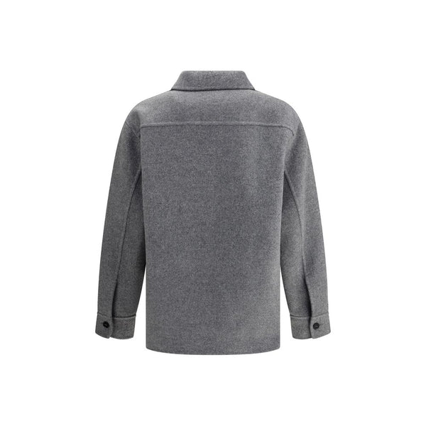 Virgin wool Shirt Jacket by Jil Sander has a minimalist and contemporary design. Featuring a classic collar and front button closure, it has adjustable button cuffs for a customized fit. Two side welt pockets add functionality without compromising the essential aesthetic. The loose fit lends comfort and versatility, making it ideal for layering and refined looks with a modern flair.