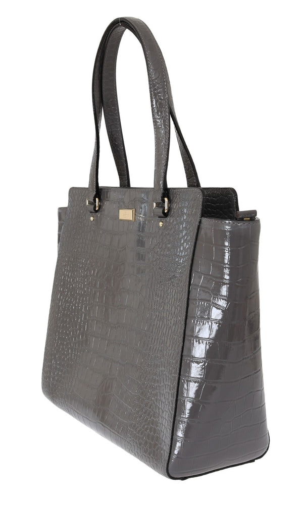 Kate Spade Grey Croc Embossed Leather Elissa Bristol Drive Tote Handbag Bag